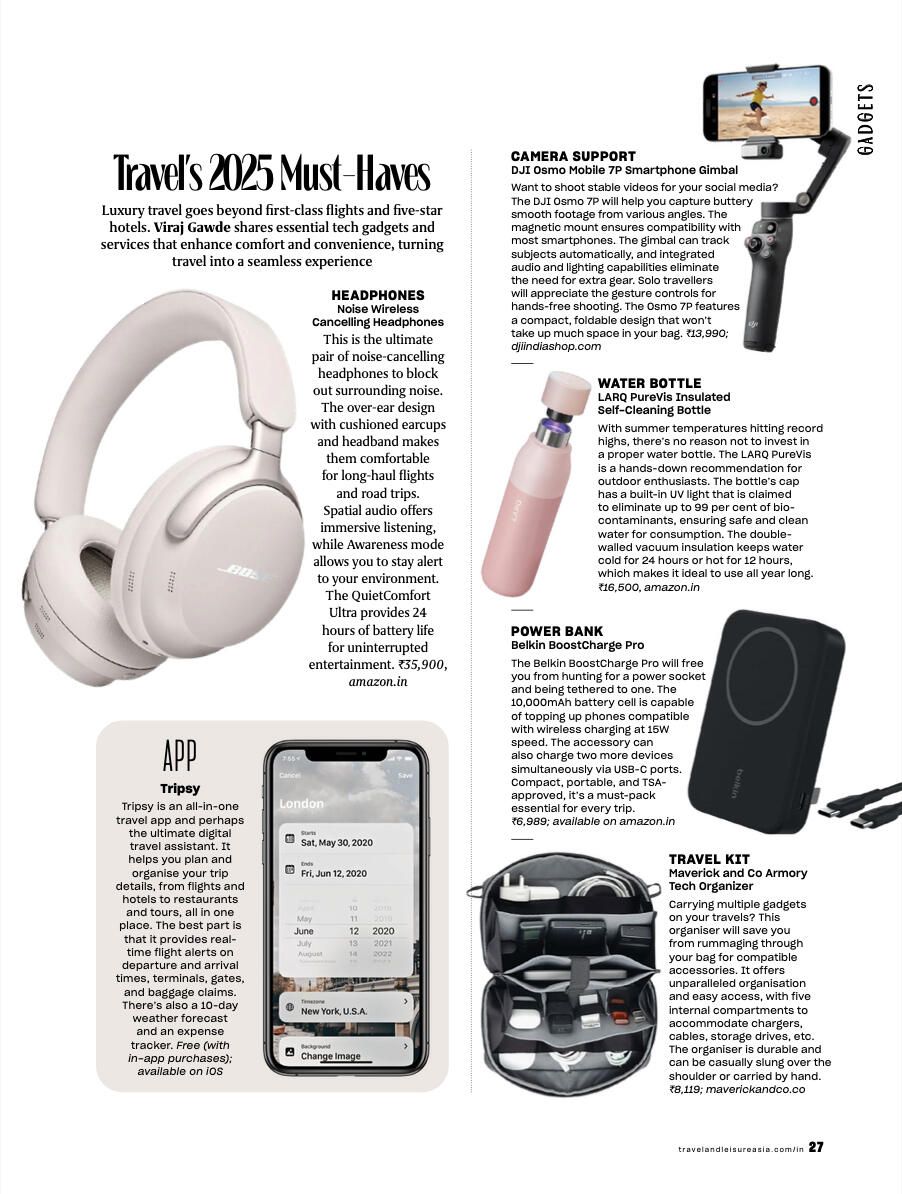 Must-have travel accessories (Travel+Leisure India, Print Issue, March 2025)